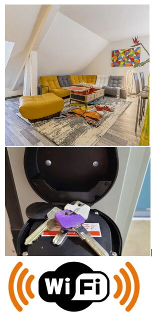 En savoir plusLe logement dispose de deux étages. Le premier palier vous servira uniquement d'accès vers le second étage, qui vous sera entièrement privatisé. L'appartement se compose d'un premier espace de couchage (lit queen size et canapé convertible), d'une salle d'eau, d'une lumineuse pièce de vie entièrement meublée, avec cuisine neuve, fonctionnelle et moderne, donnant sur un salon-séjour très confortable. Une deuxième chambre complète l'équipement de cet appartement avec deux lits simples et un bureau . Un lit bébé y est également installé.